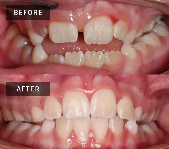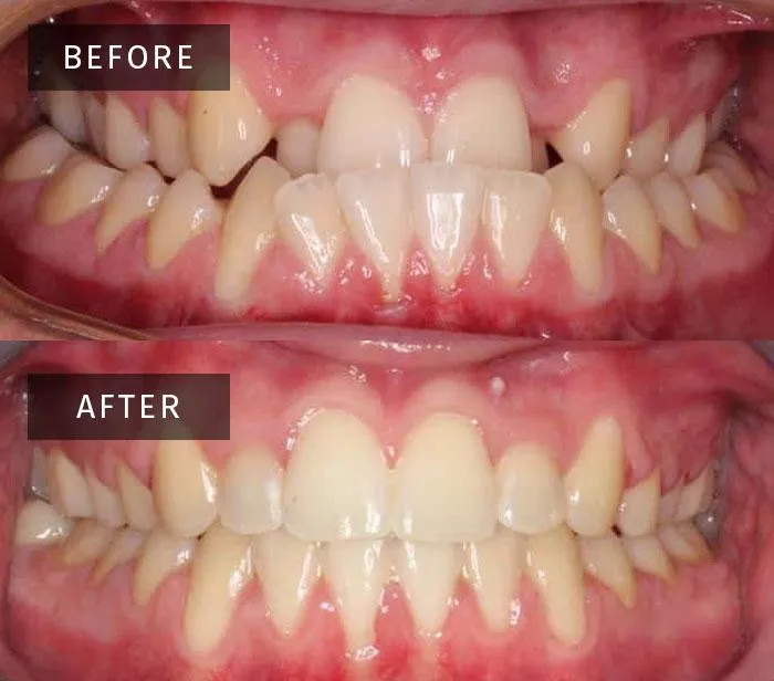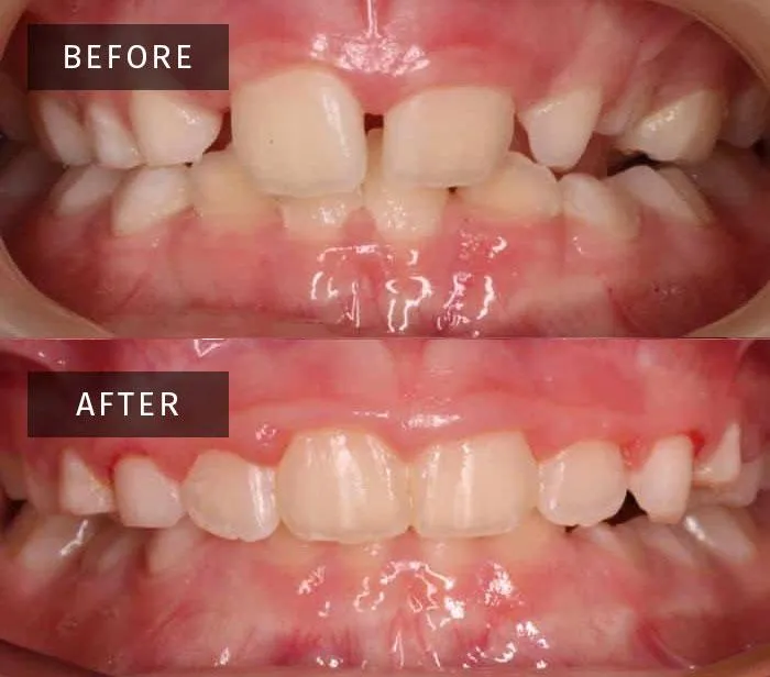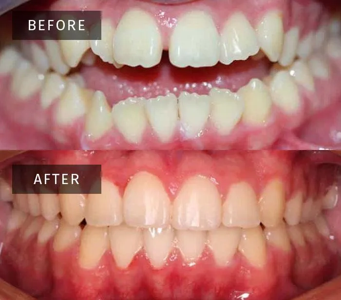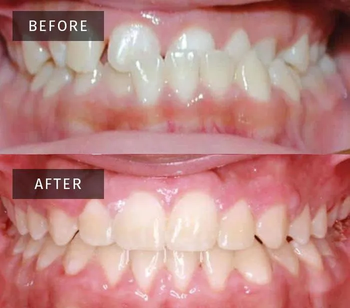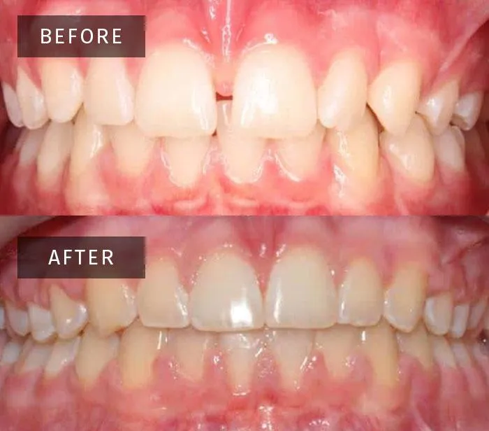 These work just like traditional braces but are less noticeable thanks to their tooth-colored brackets.